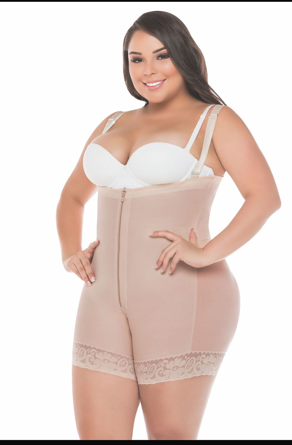 •Full-body coverage: Extends from the midsection down to the thighs for comprehensive compression and shaping.